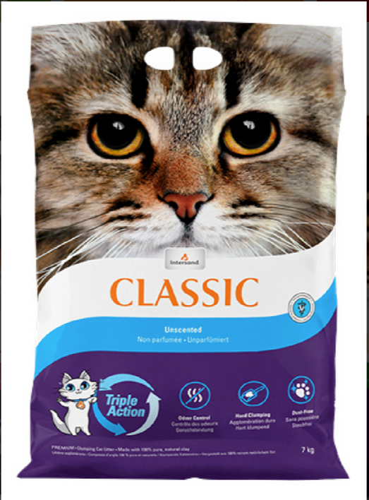 La litière pour chat Classic sans odeur d'Intersand est idéale pour les chats sensibles et les parents de chats, sans avoir à renoncer à l'hygiène dans le bac à litière.